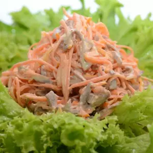 Свинина, морковь по-корейски, огурец, жареные шампиньоны, майонез