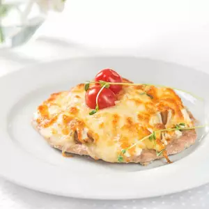 Свинина, помидор, шампиньоны, соус, сыр моцарелла
